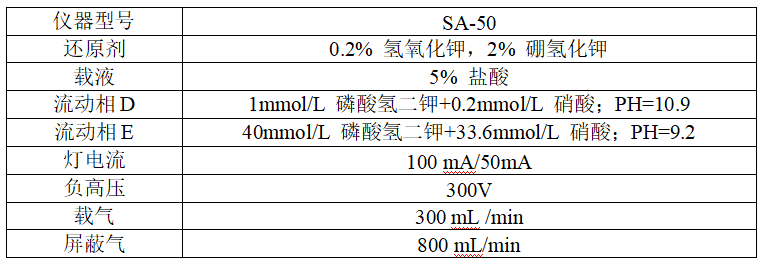 仪器:液相色谱-原子荧光联用仪LC-AFS(北京吉天仪器SA-50)、纯水仪、恒温箱、PH计。
