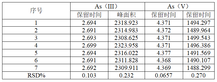 表 2 As(III)和As(V)的精密度结果