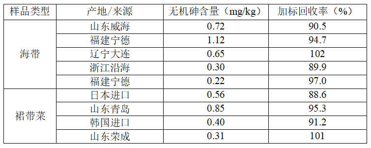 为了确证分析结果的可靠性,应用本法对样品进行加标回收试验。在样品中加入一定量的As(III)和As(V)的标液,按实验方法测定,样品和加标回收率结果见表3。
